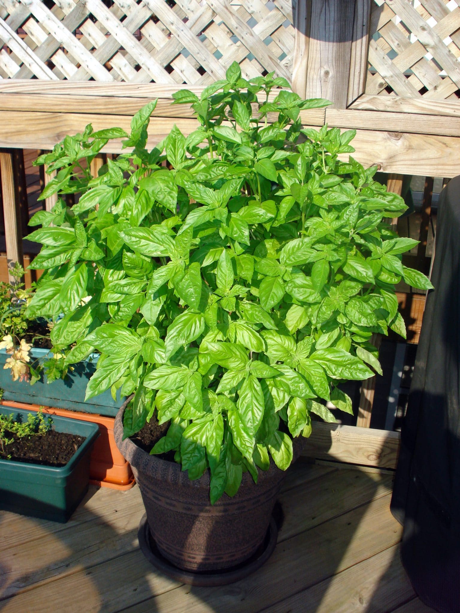 I’ve heard that if you keep plucking off the flowering white part on the basil plant that it will keep producing more leaves. Maybe last year Linus was eating them for you?