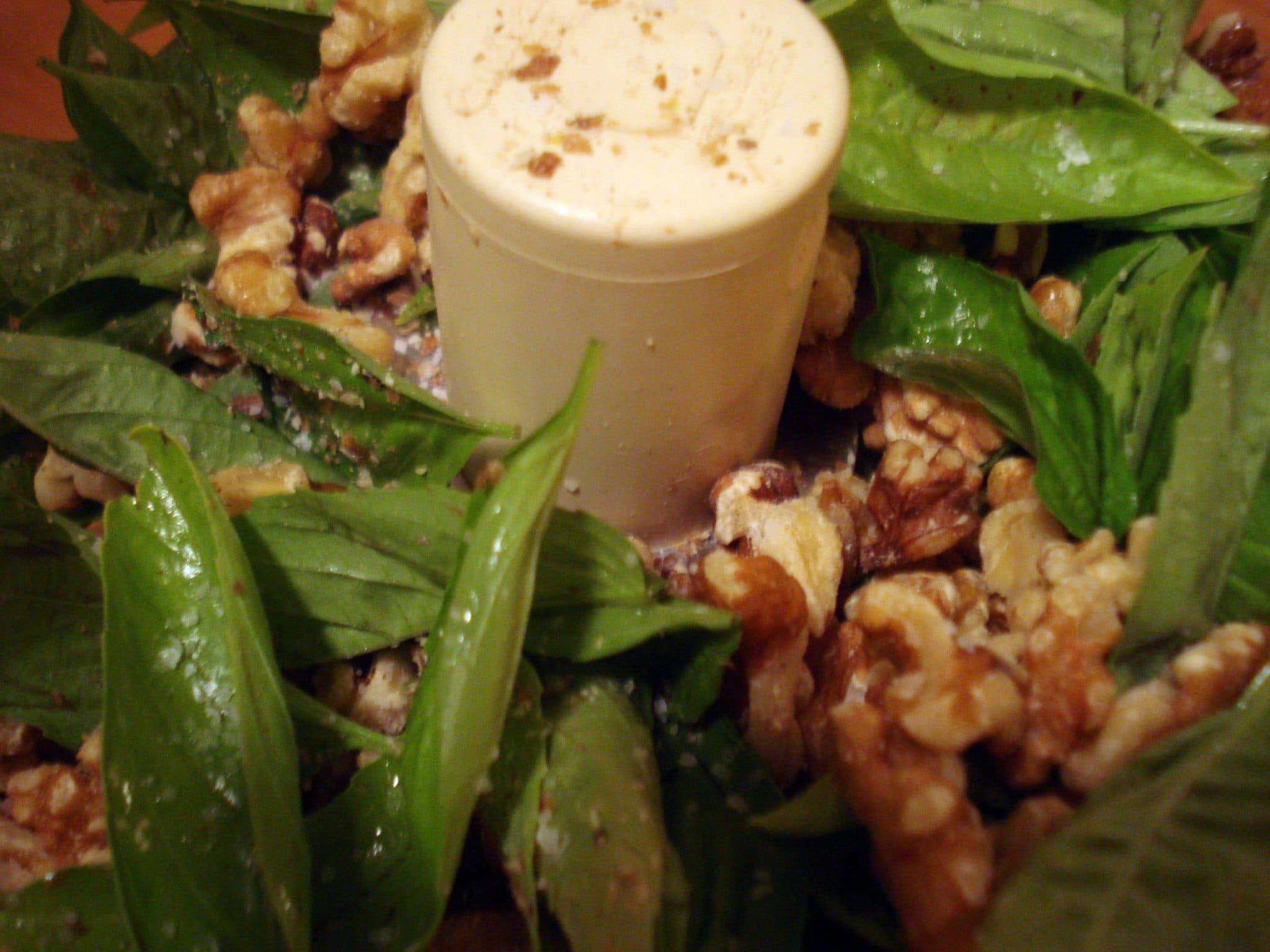 The recipes all vary a little bit. Some use pine nuts, some use walnuts; some use parmesan cheese, some include some pecorino. And proportions are always different. But none of this matters. They’re all freaking awesome.