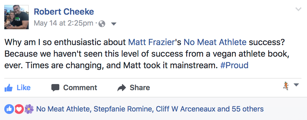 My friend Robert Cheeke, one of my original inspirations for going vegan and someone I’ve looked up to for as long as I’ve been doing this, posted this message on his personal Facebook page, which meant the world to me: